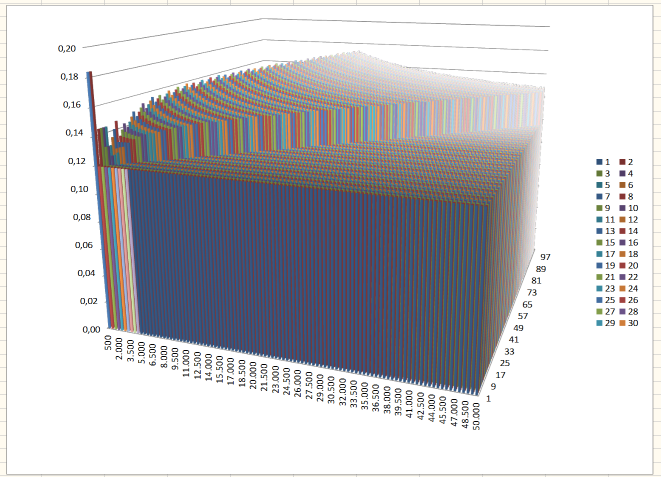 There was a performance problem when Documents with big 3D charts were Loaded (own Formats) or Imported (external Formats). That issue was located in the creation of a huge amount of 3D Objects for Chart visualization. This has been improved. For example; an example document (External with a huge Chart containing 100x100x5 vertical 3D Data Boxes) could not be imported at all. It can now be loaded in seconds and looks like this: